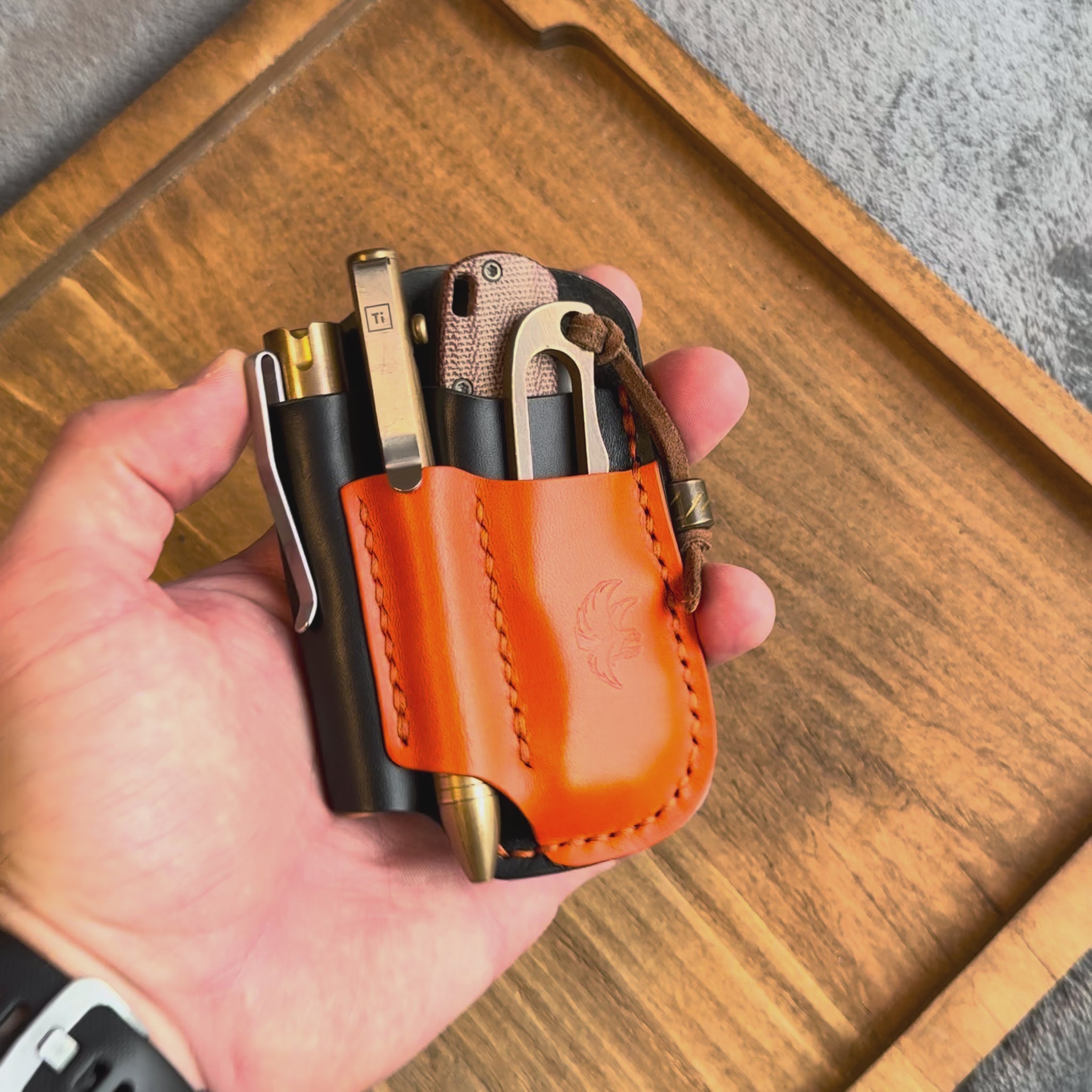 Black & Orange Leather Edc Pocket Organizer