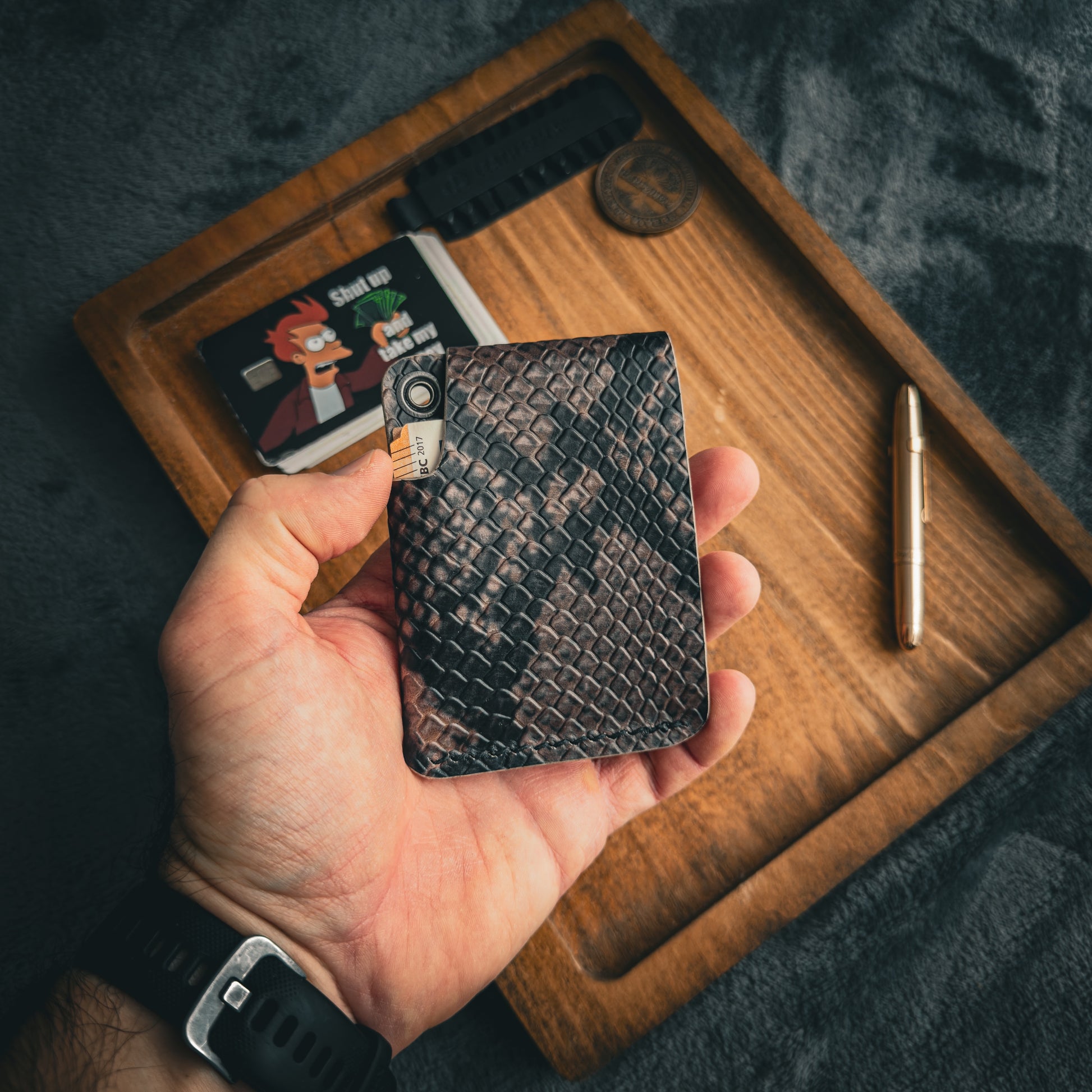 • Es bietet Platz für 8+ Karten und etwas gefaltetes Bargeld.